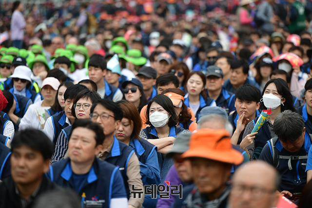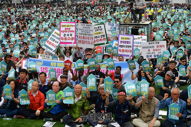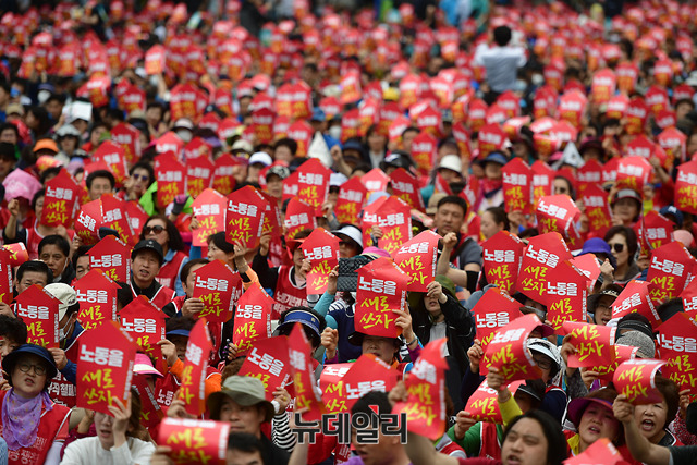 이날 민노총 대회는 근로자의 날을 맞아 '한국사회 노동을 새로 쓰자'를 주제로 서울, 부산, 광주, 대전 등 전국 14곳에서 개최되고 있다.