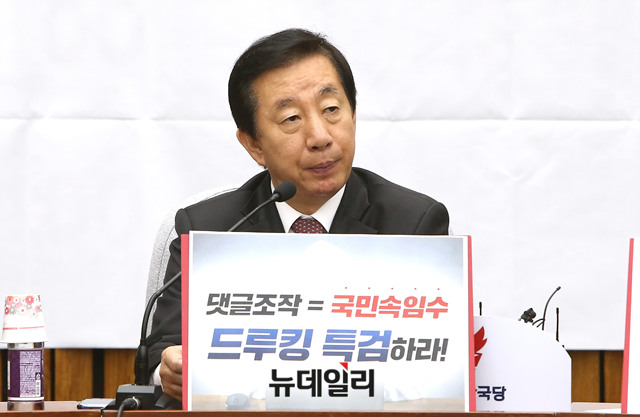 김성태 자유한국당 원내대표가 2일 오전 국회에서 열린 원내대책회의에서 모두발언을 하고 있다.