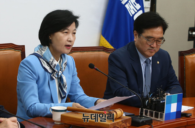 추미애 더불어민주당 대표가 2일 오전 국회에서 열린 최고위원회의에서 모두발언을 하고 있다.