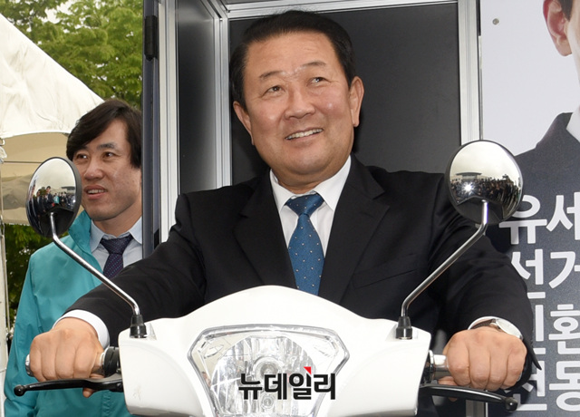 박주선 바른미래당 공동대표가 2일 오후 국회 헌정기념관 앞에서 열린 '돈 안 쓰는 선거 실천 대회'에 참석해 전동 스쿠터를 탑승하고 있다.