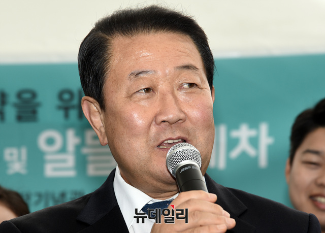 박주선 바른미래당 공동대표가 2일 오후 국회 헌정기념관 앞에서 열린 '돈 안 쓰는 선거 실천 대회'에 참석해 인사말을 하고 있다.