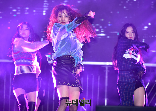 신인 걸그룹 (여자)아이들의 멤버 우기가 2일 오후 서울 용산구 블루스퀘어 아이마켓홀에서 열린 데뷔 쇼케이스에서 포인트 안무를 선보이고 있다.