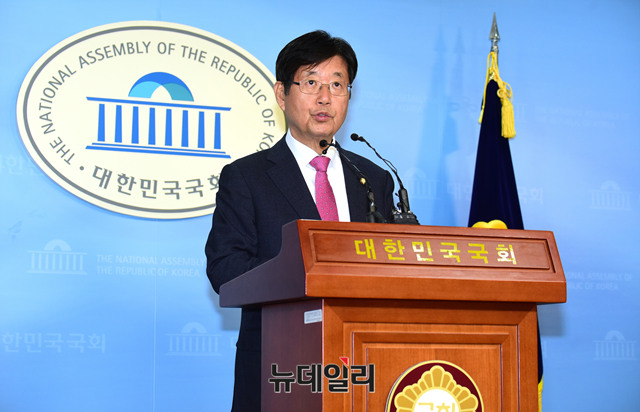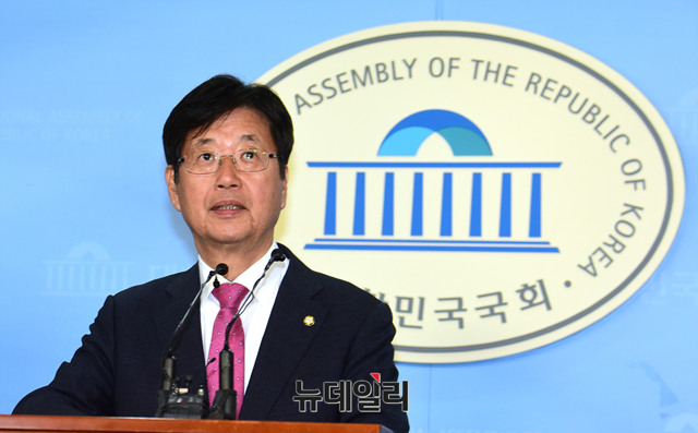 강길부 자유한국당 의원이 3일 오전 국회 정론관에서 홍준표 자유한구당 대표 사퇴를 요구하는 기자회견을 하고 있다.