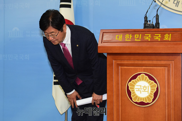 [포토] 기자회견 위해 입장하는 강길부 자유한국당 의원