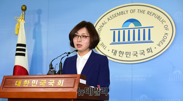 은수미 더불어민주당 성남시장 예비후보가 4일 오전 국회 정론관에서 성남시장 출마 선언을 하고 있다.
