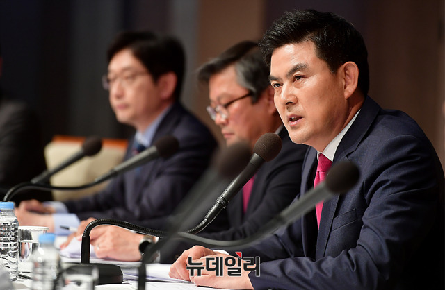 김태호 자유한국당 경남도지사 후보가 8일 오전 서울 중구 한국프레스센터에서 열린 관훈토론회에서 발언하고 있다.