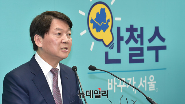 안철수 바른미래당 서울시장 후보가 8일 오전 서울 종로구 안국동 미래캠프에서 '박원순 서울시장의 7년 시정'에 대한 문제점을 지적 기자회견을 갖고 기자들의 질문에 압하고 있다.