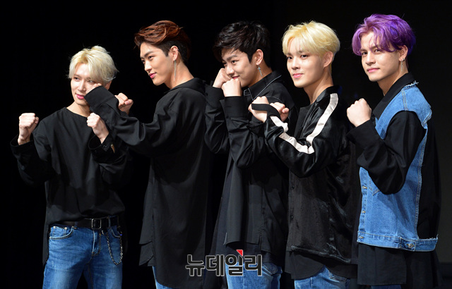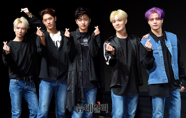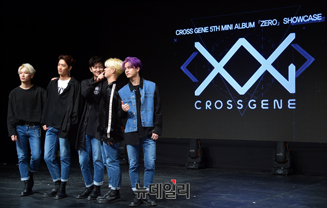 밴드 크로스진(Cross Gene : 세영, 타쿠야, 신, 용석, 상민)이 8일 오후 서울 강남구 일지아트홀에서 열린 다섯 번째 미니앨범 '제로(ZER0)' 발매 기념 쇼케이스에 참석해 포즈를 취하고 있다.제로는 5명으로 재정비한 크로스진의 새로운 시작을 알리는 앨범이다. 더블 타이틀곡 '비상', '달랑말랑'을 포함 4곡이 수록됐다.'비상'과 '달랑말랑'은 각각 새로운 나를 찾는 여정과 남녀간 미묘한 사랑의 감정을 담았다. 음원은 오늘(8일) 오후 6시 공개된다.