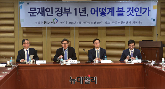 박형준 전 국회 사무총장이 9일 오전 국회 의원회관에서 열린 새한국의비전 '문재인 정부 1년, 어떻게 볼 것인가' 세미나에서 발언을 하고 있다.