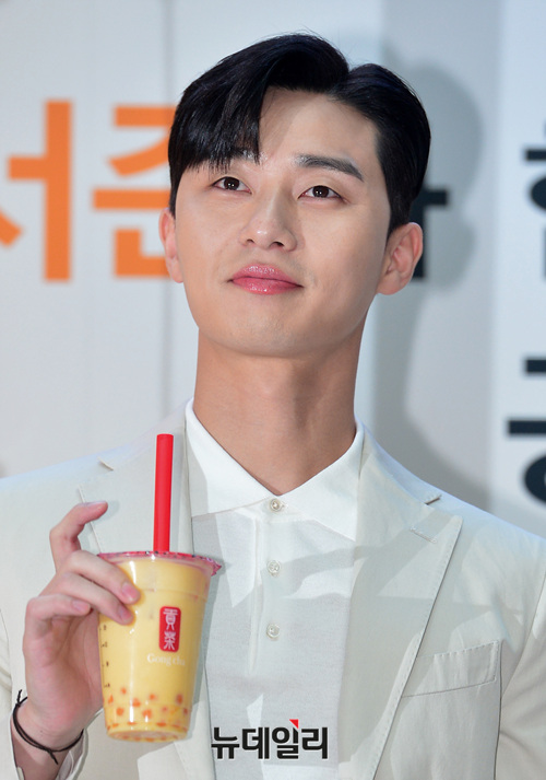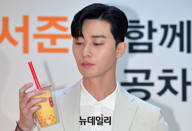 배우 박서준이 9일 오후 서울 영등포구 IFC몰 노스아트리움에서 열린 '박서준과 함께 하는 공차의 맛있는 데이트' 행사에 참석해 포토타임을 갖고 있다.