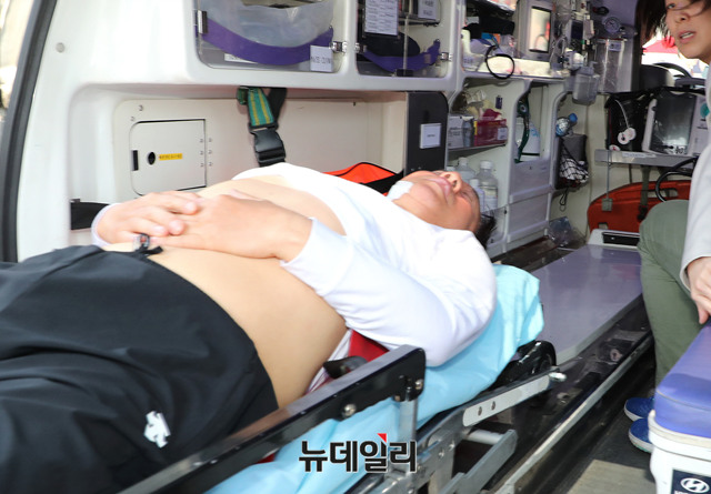 [포토] 병원으로 이송되는 김성태 자유한국당 원내대표