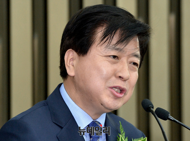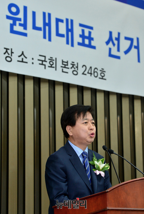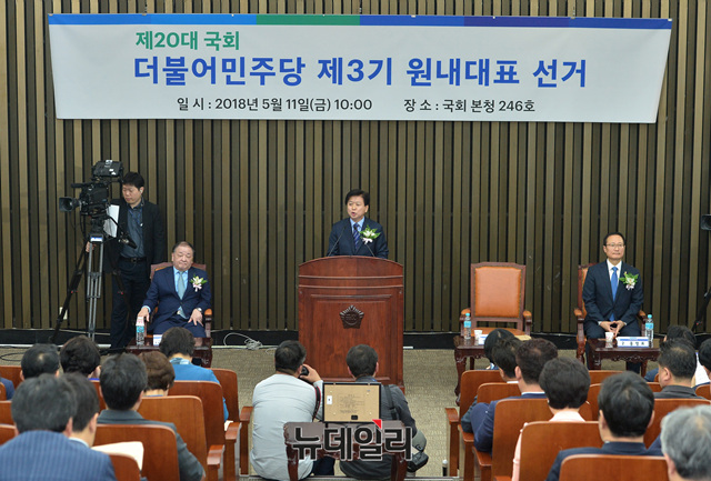 노웅래 더불어민주당 원내대표 후보가 11일 오전 국회에서 열린 '더불어민주당 신임 원내대표 선출 의원총회'에 참석해 정견발표를 하고 있다. 이날 원내대표에는 116표 중 78표를 얻은 홍영표 후보가 당선됐다.