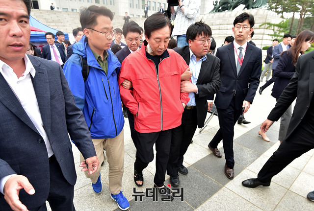 [포토] 부축 받으며 단식농성장 떠나는 김성태