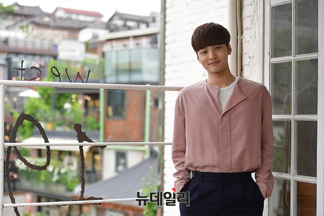 배우 김민재가 11일 오후 서울 종로구의 한 카페에서 뉴데일리와 인터뷰에 앞서 포토타임을 갖고 있다. 김민재는 최근 개봉한 영화 '레슬러(감독 김대웅)'에서 아버지 귀보의 목에 금메달을 걸어주고 싶어하는 아들 성웅 역을 맡았다.