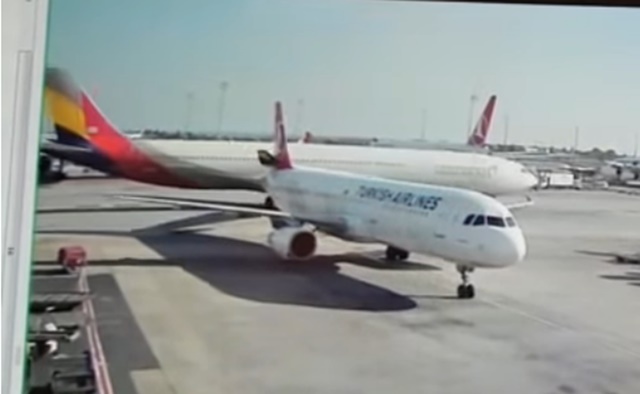 활주로 이동 중 날개로 터키항공 A321 꼬리 치고 이동