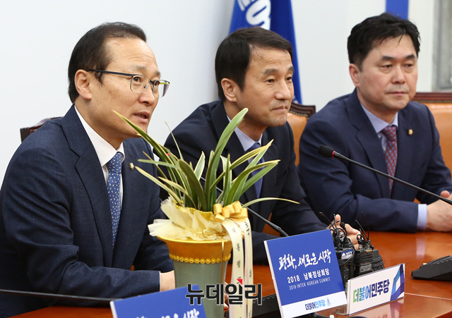 홍영표 더불어민주당 신임 원내대표가 14일 오전 국회를 예방한 한병도 청와대 정무수석을 만난 자리에서 발언하고 있다.