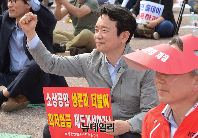 남경필 자유한국당 경기지사 후보가 14일 오후 서울 여의도공원에서 열린 '소상공인 생존권 사수 결의대회'에 참석했다.