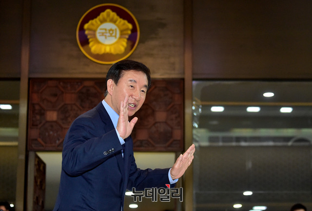 [포토] 본회의장으로 향하는 김성태 자유한국당 원내대표