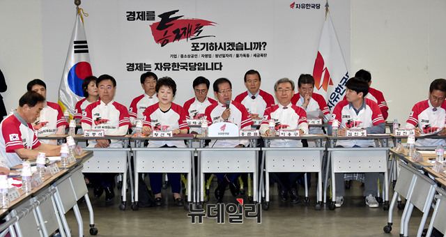 홍준표 자유한국당 대표가 15일 오전 서울 여의도 당사에서 열린 '6.13 지방선거 일자리! 설자리! 살자리! 선거대책위원회' 발대식에서 모두발언을 하고 있다.