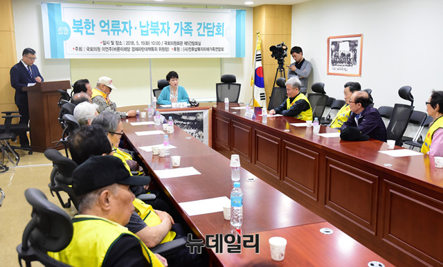 [포토] '北 억류자-납북자 가족' 면담하는 이언주 바른미래당 의원