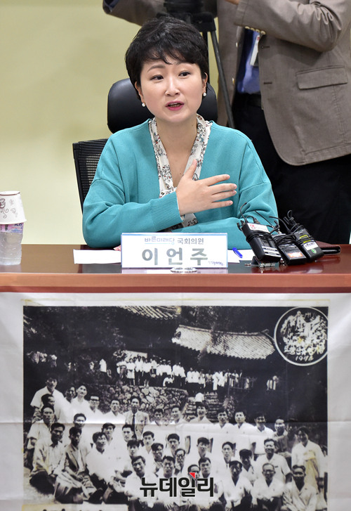 이언주 바른미래당 의원이 15일 오전 국회 의원회관에서 열린 '북한 억류자 납북자 가족 간담회'에서 발언을 하고 있다.