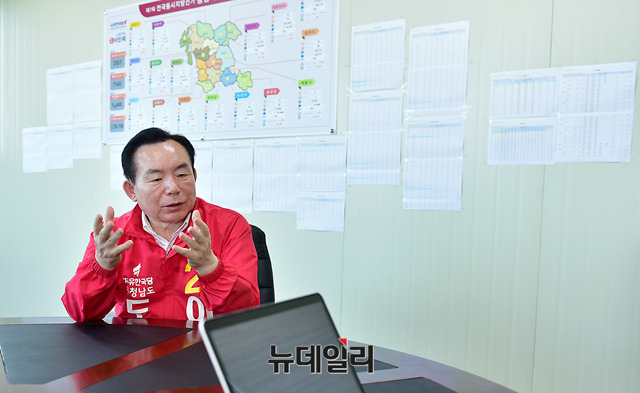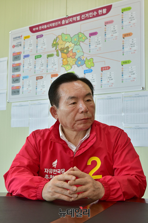 이인제 자유한국당 충남지사 후보가 14일 오후 충남 천안시의 선거사무실에서 뉴데일리와 인터뷰를 갖고, 이번 선거에 임하는 각오를 밝히고 있다. 오는 6월 13일 치뤄지는 충남지사 선거에는 이 후보를 비롯해 양승조 더불어민주당 후보, 김용필 바른미래당 후보, 차국환 무소속 후보가 이름을 올렸다.
