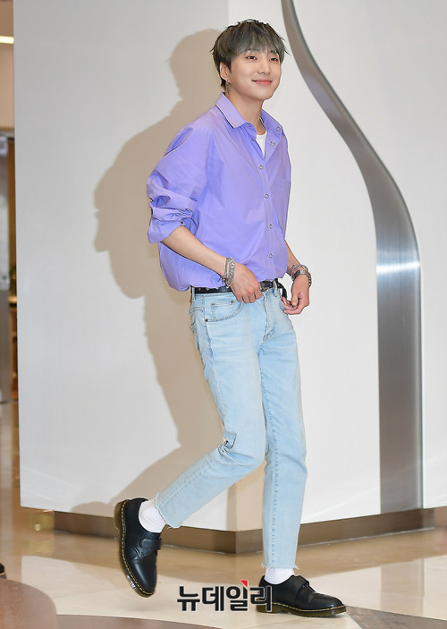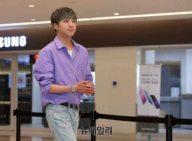위너 멤버 강승윤이 15일 오후 서울 강남구 코엑스몰 라이브플라자에서 열린 키엘 #마이리틀가든 팝업 스토어 오픈 행사에 입장하고 있다. 팝업스토어는 15일부터 25일까지 코엑스몰 키엘 부티크에서 운영된다.