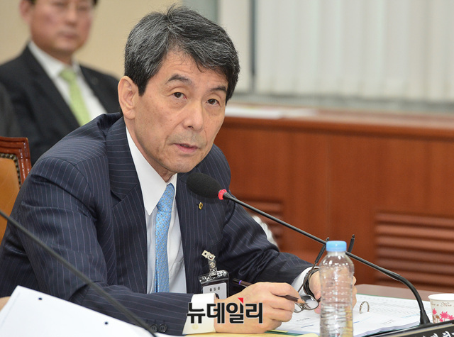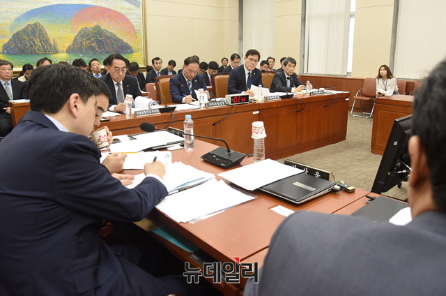 이동걸 한국산업은행 회장이 16일 오전 국회에서 열린 국회 정무위원회 전체회의에 참석해 질문에 답하고 있다.