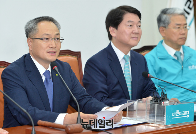 바른미래당 전남지사 후보로 공천된 박매호 자연과미래 대표가 16일 오후 국회에서 열린 영입인재 발표식에 참석해 입당 소감을 밝히고 있다.