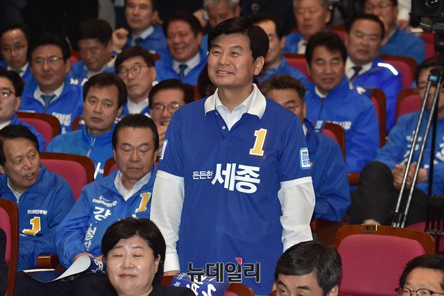 이춘희 세종시장 후보가 16일 오후 국회 의원회관에서 열린 '더불어민주당 중앙선대위 출정식 및 공천장 수여식'에서 인사하고 있다.