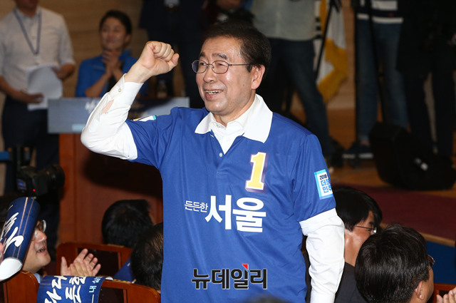 [포토] 화이팅 하는 박원순 더불어민주당 서울시장 후보