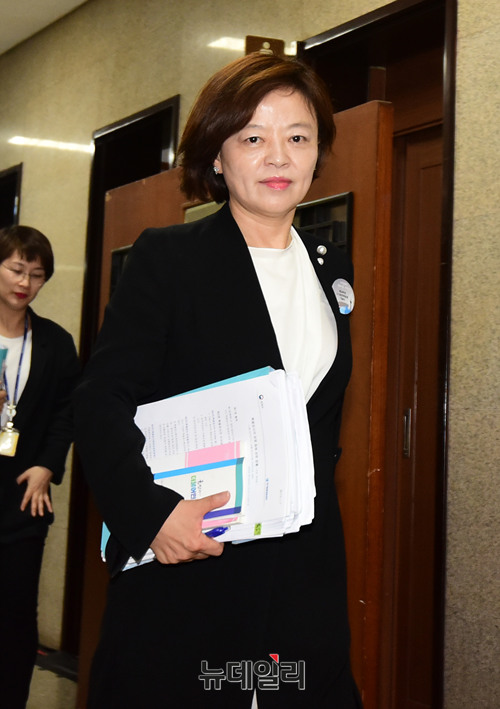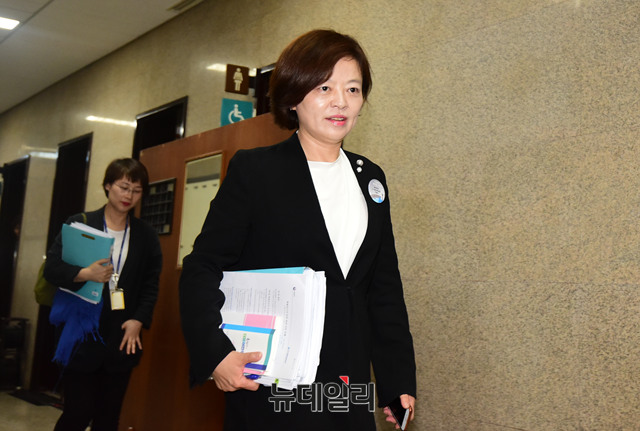진선미 더불어민주당 원내수석부대표가 18일 오후 국회 자유한국당 원내수석부대표실에서 열린 여야 4당 원내수석부대표 회동에 참석하기 위해 입장하고 있다.
