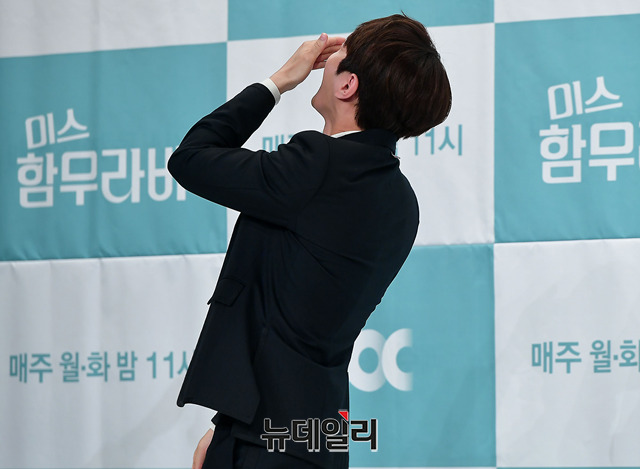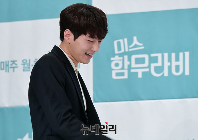 배우 김명수가 21일 오후 서울 영등포 타임스퀘어 아모리스홀에서 열린 법정드라마 '미스 함무라비(연출 곽정환, 극본 문유석)' 제작보고회에서 웃음을 감추고 있다. '미스 함무라비'는 21일 밤 11시 JTBC를 통해 첫 방송된다.