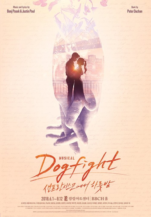 뮤지컬 '도그파이트-샌프란시스코에서 하룻밤'의 주인공 커플 사진이 공개됐다.손호영, 최동욱(SE7EN), 이창섭(BTOB)이 출연하는 '도그파이트-샌프란시스코에서 하룻밤'(이하 '도그파이트')은 6월 1일부터 8월 12일까지 광림아트센터 BBCH홀에서 한국 초연된다.공개된 커플 사진에서 버드레이스 역의 손호영과 이창섭은 로즈 역의 정재은과 서로를 바라보며 환상적인 케미를 예고한다. 이어 최동욱(세븐)과 양서윤은 서로를 바라보지 못하고 수줍게 웃으며 색다른 모습을 보이기도 했다.'도그파이트'는 지난해 개봉한 뮤지컬 영화 '위대한 쇼맨'의 작곡가인 벤제이파섹과 저스틴 폴 듀오의 작품이다. 1960년대 미국 혼란과 동요의 시기에 폭력이 일상화된 사회에서 자라난 로즈와 버드, 베트남전 참전을 앞둔 젊은 해병대원들의 이야기로 꾸며진다.오는 29일 2차 티켓 오픈을 진행한다.[사진=메이커스프로덕션, 킹앤아이컴퍼니]