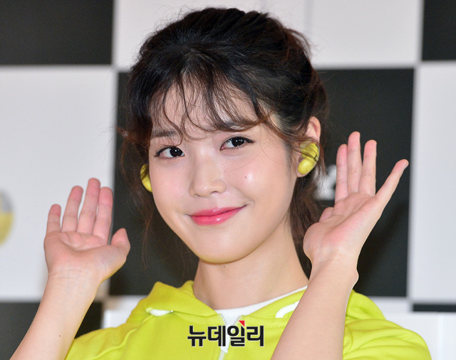 가수 아이유가 23일 오전 서울 웨스틴조선호텔에서 열린 소니코리아 무선 노이즈 캔슬링 이어폰 출시 기념 행사에 참석해 포토타임을 갖고 있다.