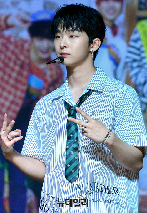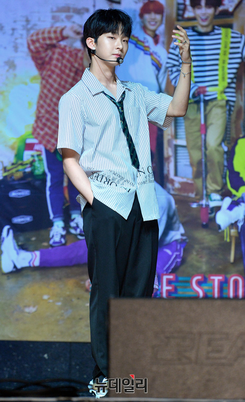 그룹 일급비밀(TST: 아인, 케이, 요한, 우영, 정훈, 용현, 경하) 우영이 23일 오후 서울 마포구 하나투어 브이홀에서 열린 싱글 '러브스토리(LOVE STORY)' 발매 기념 쇼케이스에 참석해 포즈를 취하고 있다.