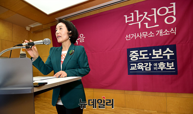 박선영 서울시교육감 후보가 23일 오후 서울 종로구 안국역에 위치한 본인의 선거사무실 개소식에서 참석해 자리하고 있다. 박 후보는 이날 개소식에서 △미래교육 △공정교육 △희망교육 △책임교육 △자율교육 5대 비전을 발표했다.
