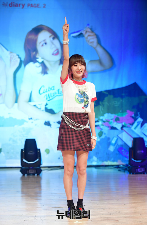 볼빨간사춘기 안지영이 24일 오후 서울 강남구 일지아트홀에서 열린 미니앨범 '레드 다이어리 페이지2' 쇼케이스에서 웃고 있다.