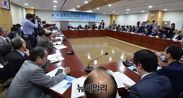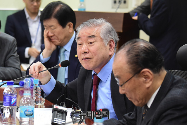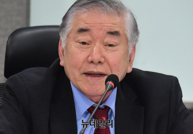 문정인 대통령 통일외교안보특보(연세대 명예특임교수)가 25일 오후 국회 의원회관에서 열린 '남북정상회담과 한반도의 미래 남북정상회담의 결과 분석과 남-북-미 관계의 모색' 토론회에서 발언을 하고 있다.