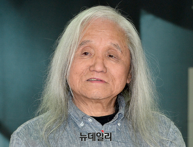 가수 신중현이 28일 오후 서울 종로구 서울문화재단 대학로연습실에 위치한 뮤지컬 '미인' 연습 현장을 찾아 인사말을 하고 있다.