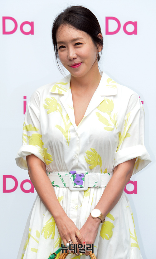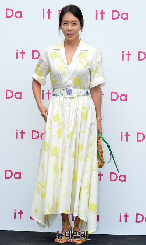배우 김정은이 29일 오후 서울 용산구 그랜드하얏트서울 호텔에서 열린 '잇다(it Da) 론칭 파티'에 참석해 포즈를 취하고 있다.