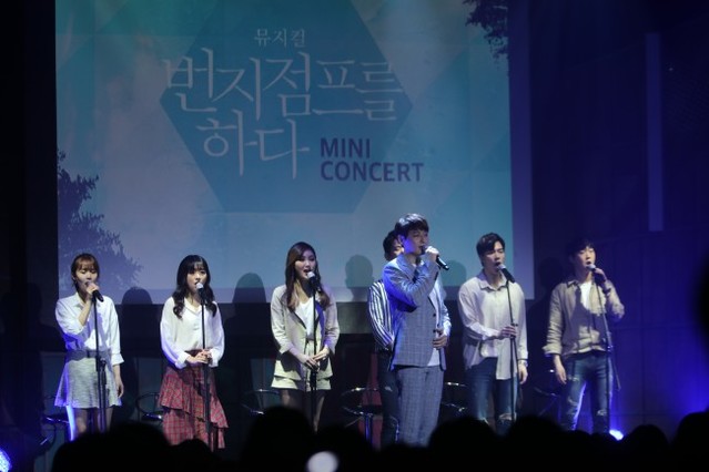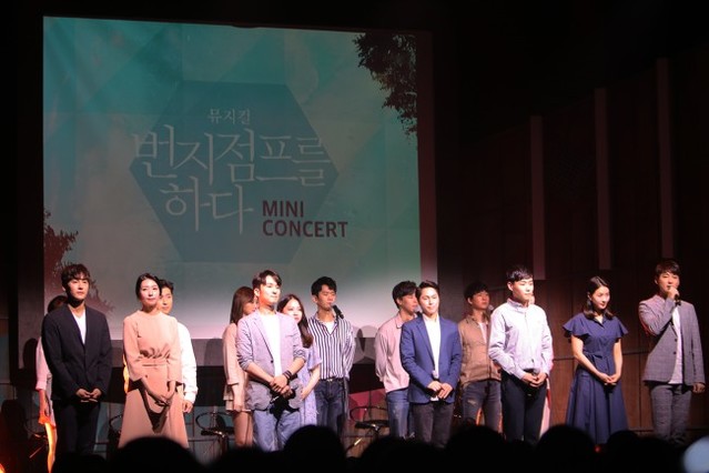 이병헌 故(고) 이은주 주연의 동명영화를 원작으로 한 뮤지컬 '번지점프를 하다'가 세 번째 공연을 펼친다.세종문화회관의 '2018-19 세종시즌' 공연으로 5년 만에 돌아온 뮤지컬 '번지점프를 하다'가 지난 28일 오후 8시 인터파크 카오스홀에서 미니콘서트를 열었다.이번 미니콘서트는 본 공연 전에 그동안 '번지점프를 하다'를 기다려준 많은 관객들에게 감사의 인사를 대신하는 무대이다. 지난 23일 오후 4시에 인터파크에서 진행된 미니콘서트 예매는 티켓 오픈과 동시에 매진되기도 했다.이날 '그대인가요', '혹시, 들은 적 있니', '그런가봐' 등 '번지점프를 하다'를 대표하는 주요 넘버 10곡을 8인조 라이브 밴드의 선율과 함께 선보였으며, 전 출연자들이 함께 토크콘서트를 가졌다. 최호중과 진상현 배우는 진행을 맡아 시종일관 유쾌한 에너지로 화기애애한 분위기를 이끌었다.