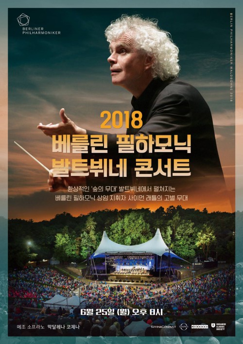 멀티플렉스 영화관 메가박스의 큐레이션 브랜드 클래식 소사이어티가 6월 25일 '2018 베를린 필하모닉 발트뷔네 콘서트'를 중계 상영한다.'베를린 필하모닉 발트뷔네 콘서트'는 '숲의 무대'라는 의미를 지닌 발트뷔네 원형 극장에서 매년 개최되는 한 여름밤의 클래식 콘서트로, 유로파 콘서트와 함께 베를린 필하모닉을 대표하는 행사다.올해는 2002년부터 16년 동안 베를린필을 이끌어온 상임 지휘자 사이먼 래틀이 임기의 마지막을 장식하는 무대이다. 그의 리듬감이 빛을 발할 레퍼토리인 조지 거슈윈의 리드미컬한 '쿠바' 서곡으로 막을 열며, 하차투리안의 발레 모음곡 '가야네'도 연주된다.래틀의 부인이자 세계적인 메조소프라노 막달레나 코제나의 깊은 표현력으로 캉틀루브의 '오베르뉴의 노래'를 들려준다. 콘서트의 마지막은 카라얀 시대부터 베를린필이 즐겨 연주해 온 단골 레퍼토리인 레스피기의 '로마의 소나무'로 끝맺는다.