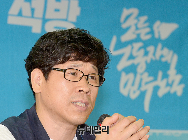 한상균 민주노동조합총연맹 전 위원장이 31일 오전 서울 중구 민주노총에서 열린 기자간담회에 참석해 인사말을 하고 있다.