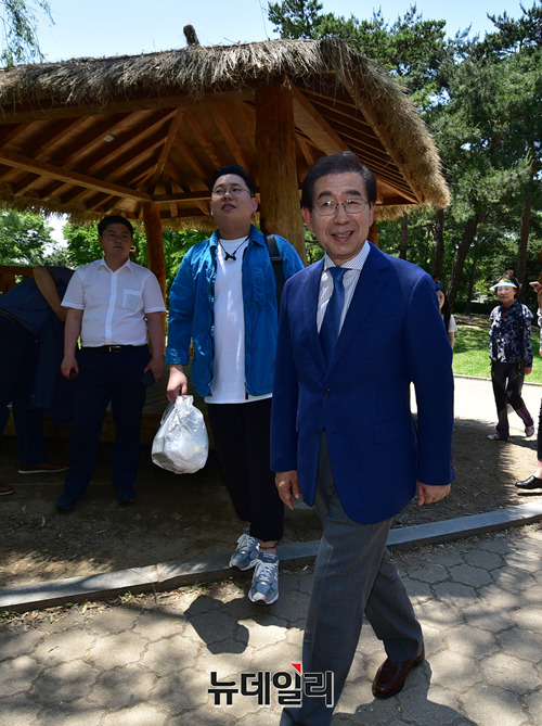 박원순 더불어민주당 서울시장 후보가 1일 정오 서울 여의도공원을 찾아 직장인들과 도시락을 먹으며 대화를 나누고 있다.
