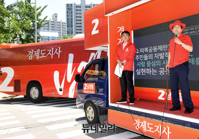 이날 남 후보는 과천, 안양, 의왕을 방문해 지역별 정책협약식을 갖고 군포 산본시장을 찾아 상인들을 만났다. 이후 안양 범계역 일대에서 거리 유세를 이어갈 예정이다. (경기 안양=뉴데일리 공준표 기자)