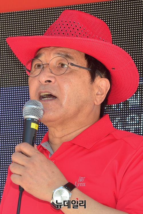 심재철 국회 부의장이 2일 오후 경기 안양시 동안구 중앙공원 차 없는 거리에서 열린 남경필 자유한국당 경기지사 후보 유세 현장에 참석해 발언하고 있다.