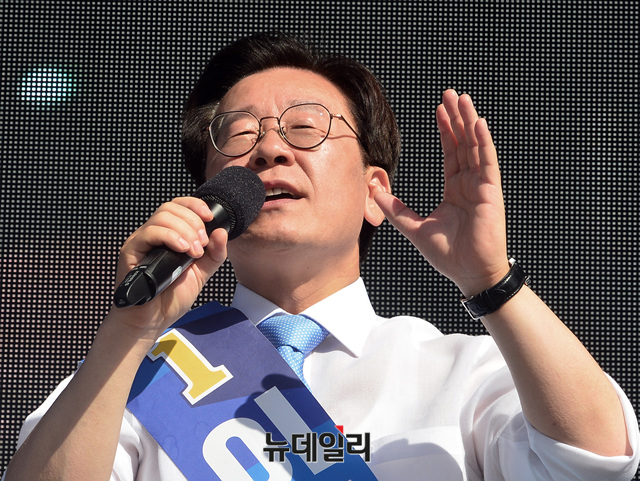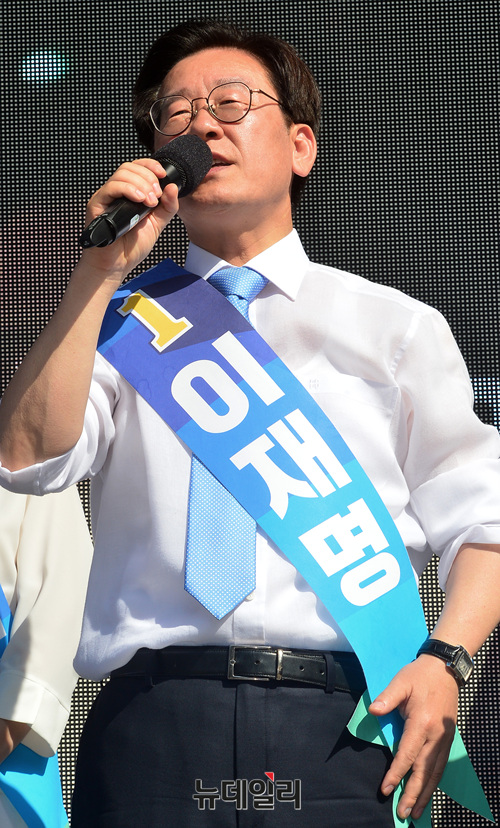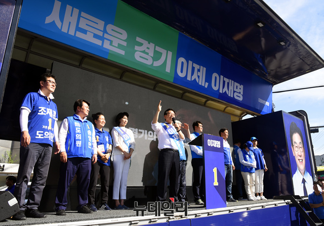 이날 이 후보는 평택 통북시장에서 전통시장 및 지역균형 발전 방안을 발표했다. 이후 화성 동판 센트럴파크를 찾아 유세를 이어갔다. (경기 오산=뉴데일리 공준표 기자)