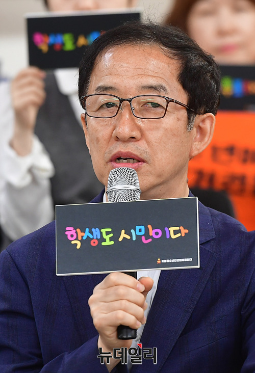 김사열 대구교육감 후보가 4일 오후 서울 중구 환경재단에서 열린 촛불청소년인권법제정연대와 정책협약식에서 참석해 발언을 하고 있다. 이날 협약식에는 송주명 경기교육감 후보, 이재정 경기교육감 후보, 김사열 대구교육감 후보, 조희연 서울교육감 후보가 참석했다.