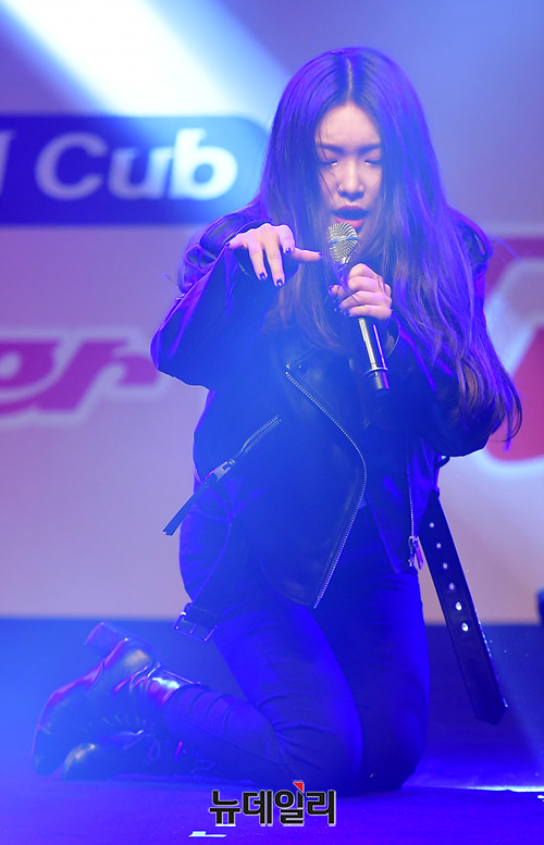 가수 청하가 5일 오전 서울 중구 더플라자호텔에서 열린 2018 슈퍼 커브(2018 Super Cub) 공식 출시행사에서 무대를 선보이고 있다. 청하는 이날 일일 모델로 참석했다.
